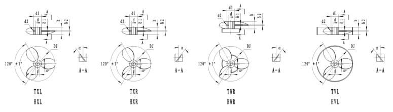 81、四葉左旋導流筒推進式SVL      82、四葉右旋推進式SXR